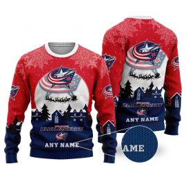 Personalized Columbus Blue Jackets Christmas Ugly Sweater Design Show Your Spirit