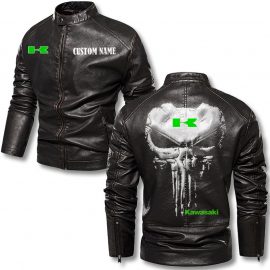 Custom Name Punisher Skull Kawasaki Personalized Leather Jacket Warm Jacket Winter Outer Wear