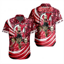 New Jersey Unique Devils Design For Halloween Short Sleeves Button Shirt
