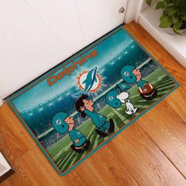 Miami Dolphins NFL Snoopy And Friends At The Football Stadium Doormat