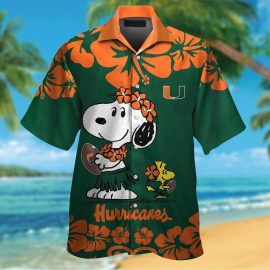 Miami Hurricanes Snoopy Short Sleeve Button Up Tropical Aloha Hawaiian Shirts For Men Women NCAA D35