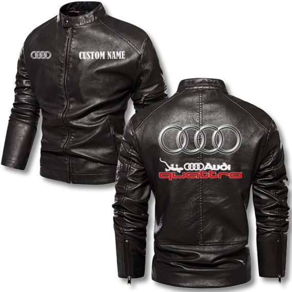 Audi Quattro Personalized Stand Collar Leather Jacket Warm Jacket Winter Outer Wear