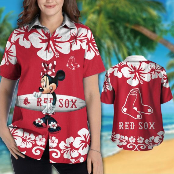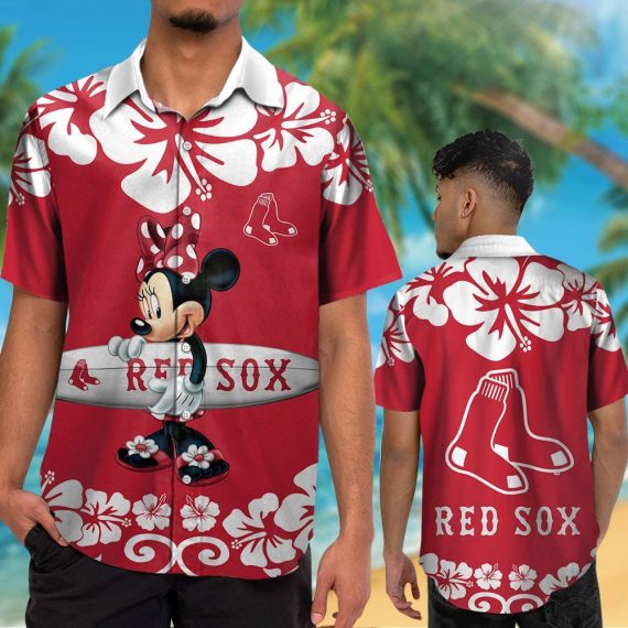 Boston Red Sox Minnie Mouse Short Sleeve Button Up Tropical Aloha Hawaiian Shirts MLB