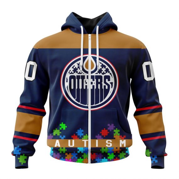 Customized Edmonton Jersey Oilers Fights Against Autism Zip Up D6