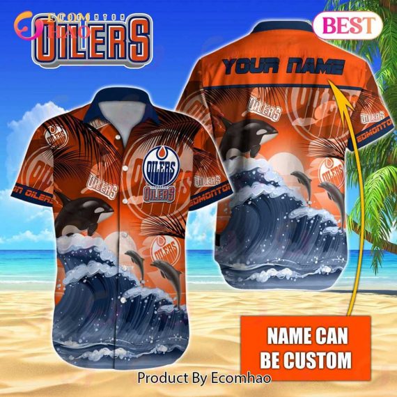 Edmonton Special Oilers Hawaiian Design With Dolphins And Waves Button Shirt