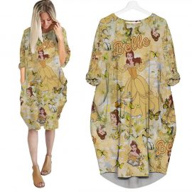 Belle Princess Yellow Butterfly Glitter Cute Disney Cartoon Summer Vacation Women Girls Batwing Pocket Dress LP18