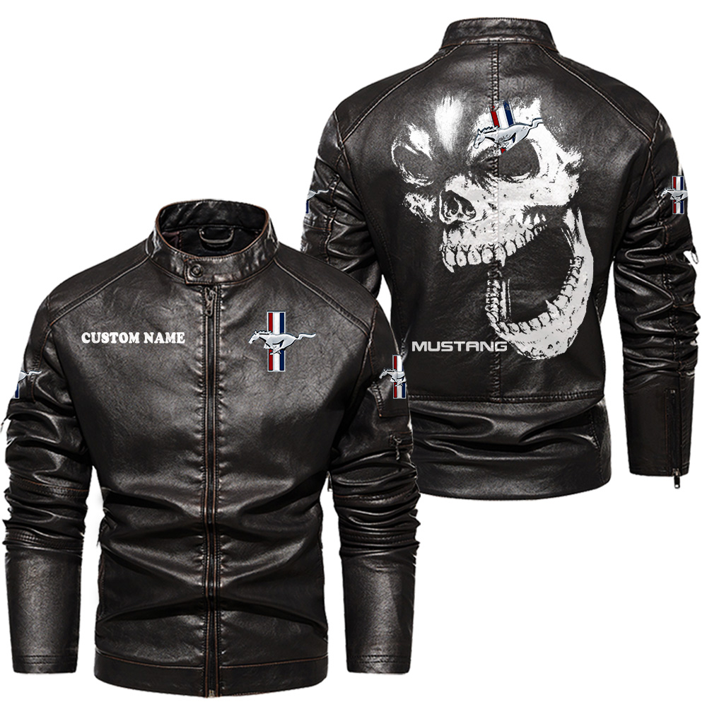 Ford Mustang Personalized Cool Design Racing Style Stand Collar Leather Jacket For Fan I