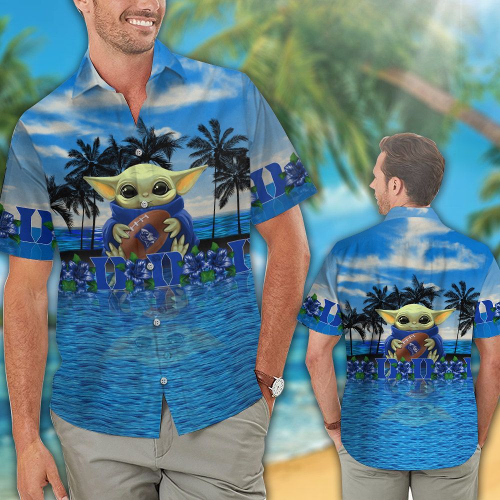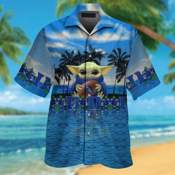 Gift Ideas Duke Blue Devils & Baby Yoda Short Sleeve Button Up Tropical Aloha Hawaiian Shirts For Men Women NCAA SR403