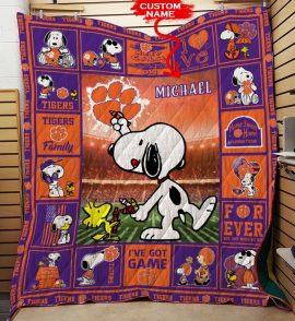 Clemson Tigers Snoopy NCAA Custom Name Quilt Fleece Blanket