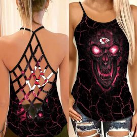 Kansas City Chiefs Lava Skulls Tiger 3D Printed Criss Cross Tanktop