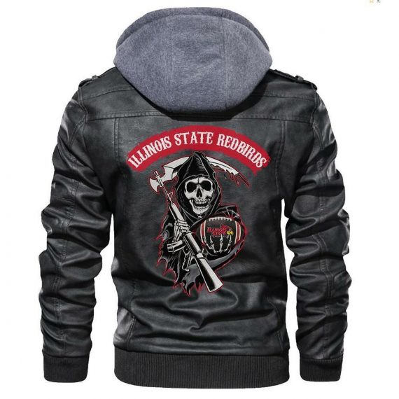 Illinois State Redbirds NCAA Leather Jacket With Removable Hood