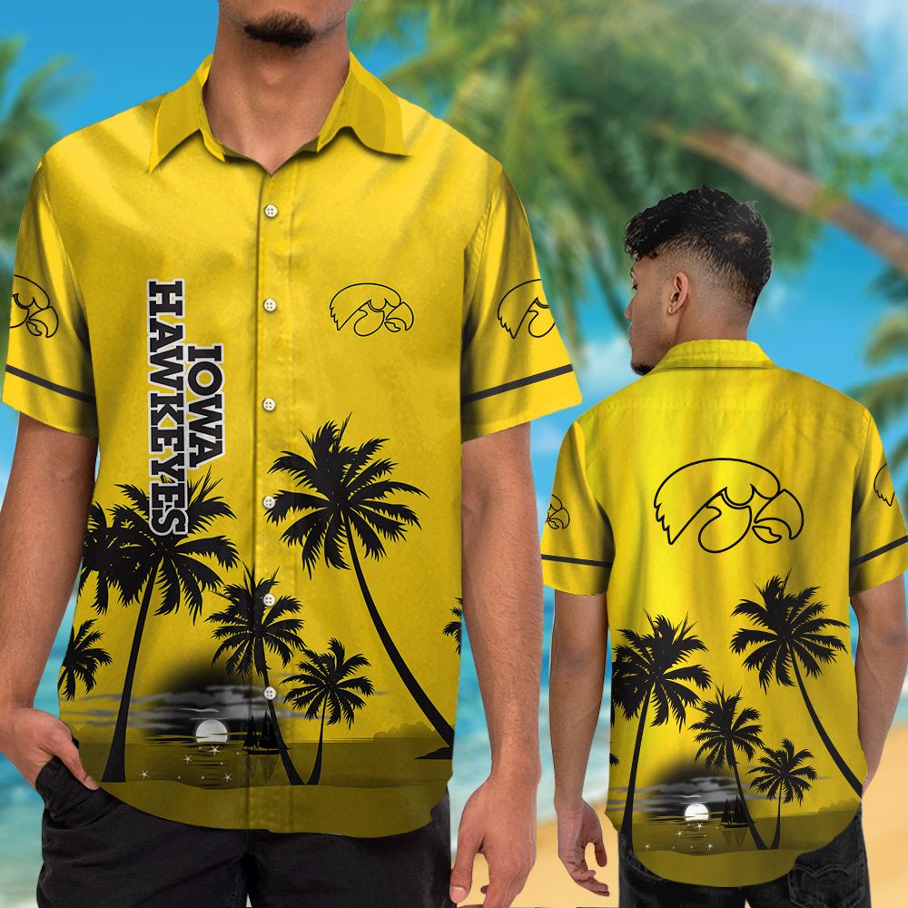 Iowa Hawkeyes Short Sleeve Button Up Tropical Aloha Hawaiian Shirts NCAA