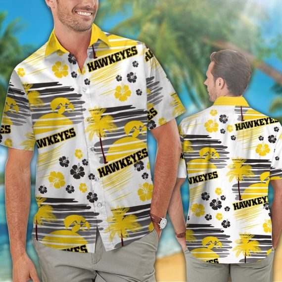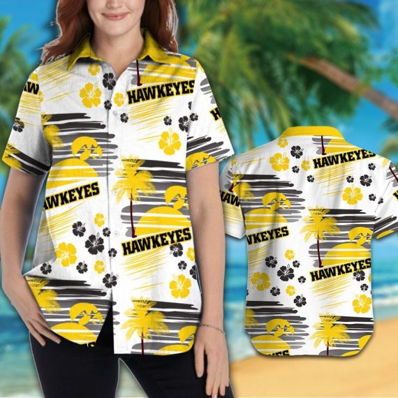 Iowa Hawkeyes Short Sleeve Button Up Tropical Aloha Hawaiian Shirts NCAA