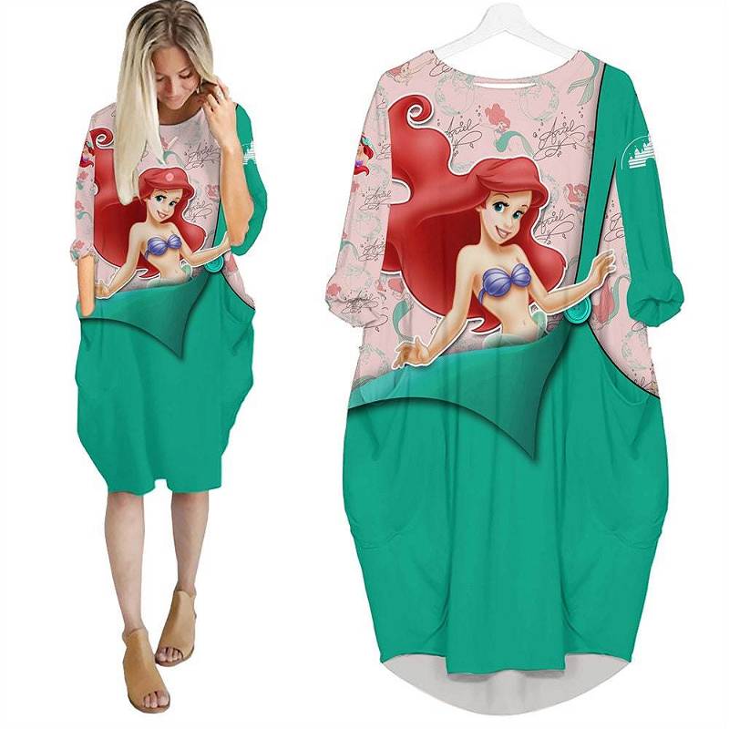 Little Mermaid Ariel Green Disney Cartoon Summer Vacation Women Girls Batwing Pocket Dress LP14