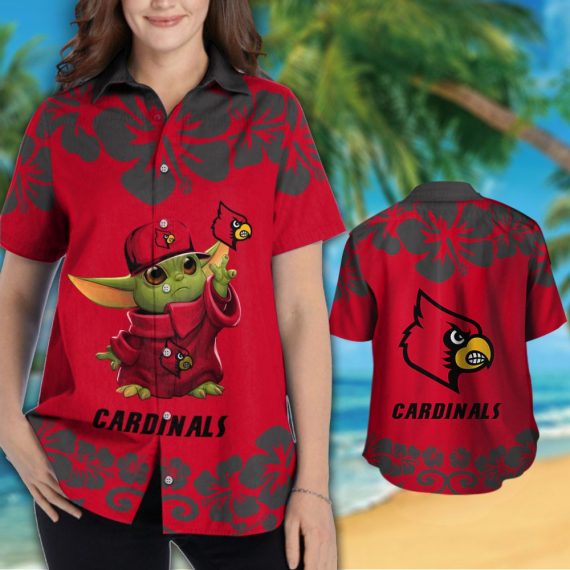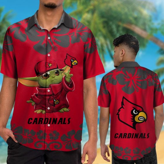 Louisville Cardinals Baby Yoda Short Sleeve Button Up Tropical Aloha Hawaiian Shirts NCAA