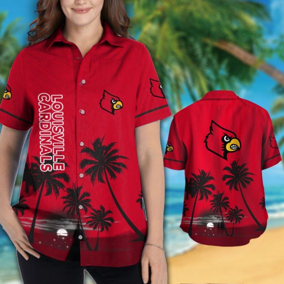 Louisville Cardinals Short Sleeve Button Up Tropical Aloha Hawaiian Shirts NCAA