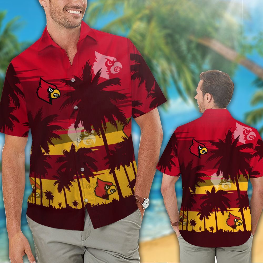 Louisville Cardinals Short Sleeve Button Up Tropical Aloha Hawaiian Shirts NCAA
