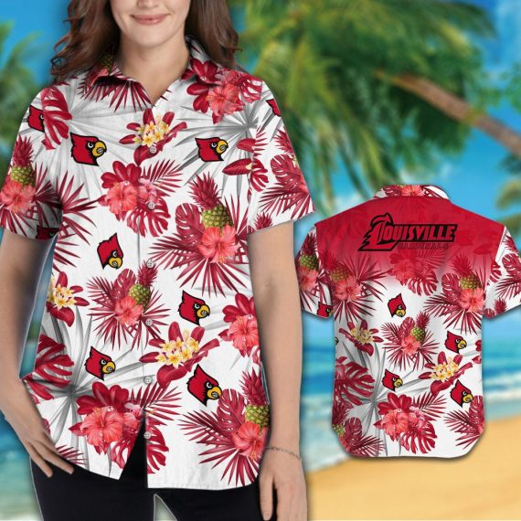 Louisville Cardinals Short Sleeve Button Up Tropical Aloha Hawaiian Shirts NCAA