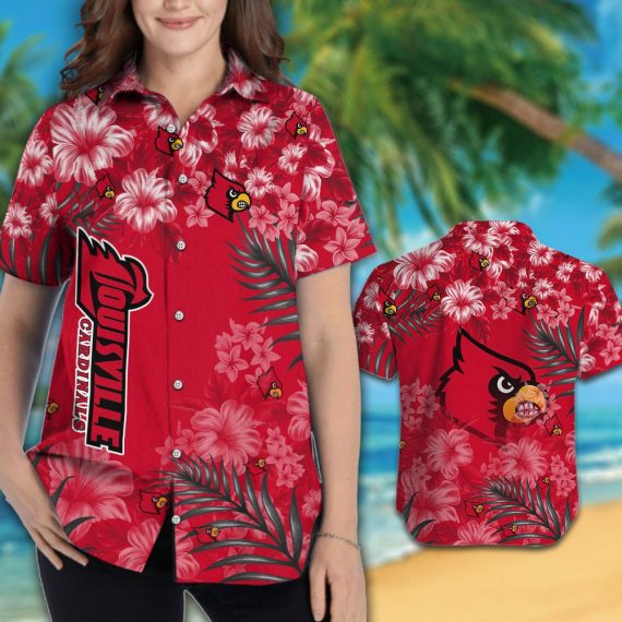Louisville Cardinals Short Sleeve Button Up Tropical Aloha Hawaiian Shirts NCAA