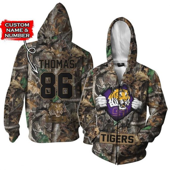 Lsu Tigers 3D Shirt Hunting Camo Ncaa Custom Name Hoodie