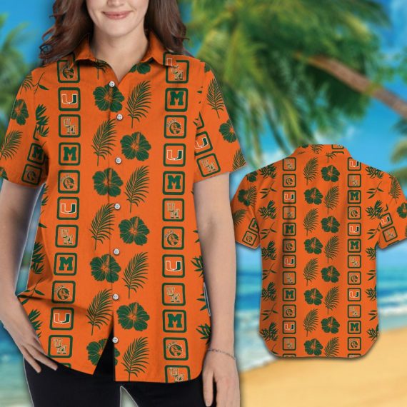 Miami Hurricanes Short Sleeve Button Up Tropical Aloha Hawaiian Shirts For Men Women NCAA D3