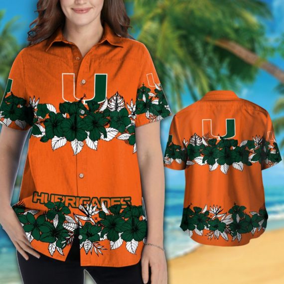 Miami Hurricanes Short Sleeve Button Up Tropical Aloha Hawaiian Shirts For Men Women NCAA D21