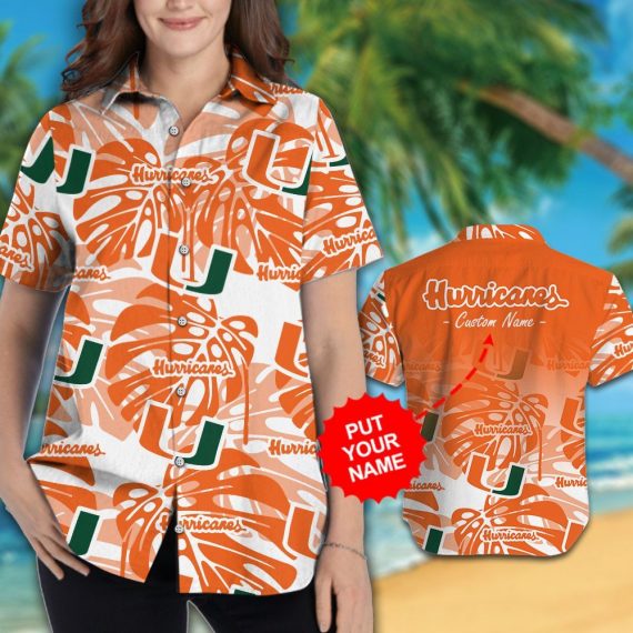 Miami Hurricanes Short Sleeve Button Up Tropical Aloha Hawaiian Shirts For Men Women NCAA D19