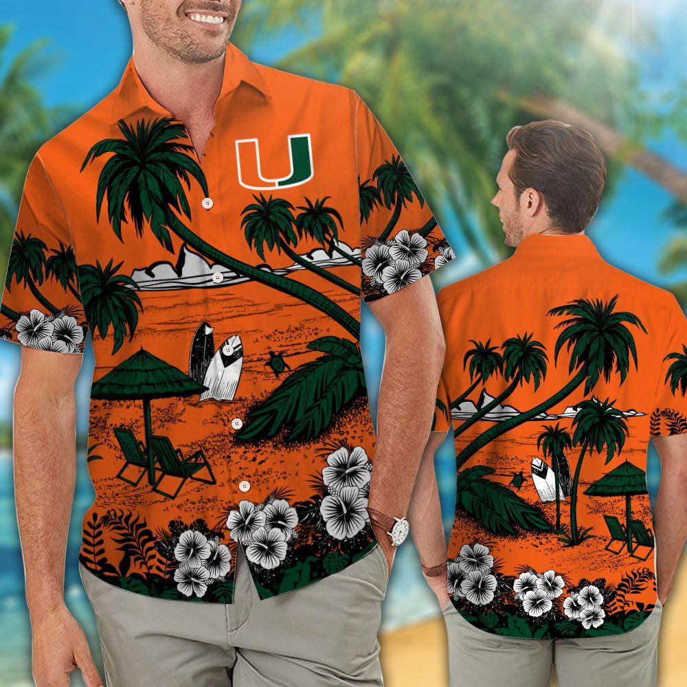 Miami Hurricanes Short Sleeve Button Up Tropical Aloha Hawaiian Shirts For Men Women NCAA D21