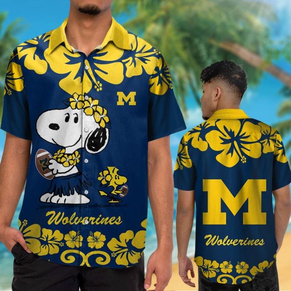 Michigan lverines Snoopy Short Sleeve Button Up Tropical Aloha Hawaiian Shirts NCAA