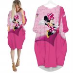 Minnie Mouse Pink Cute Disney Cartoon Summer Vacation Women Girls Batwing Pocket Dress LP8