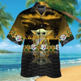 Pittsburgh Steelers Baby Yoda Short Sleeve Button Up Tropical Aloha Hawaiian Shirts NFL