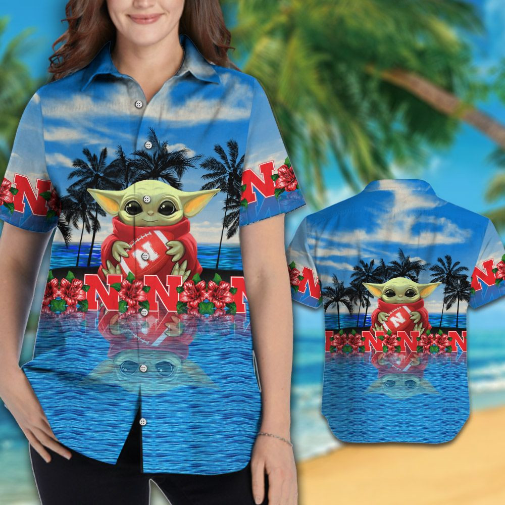 Nebraska Cornhuskers Baby Yoda Short Sleeve Button Up Tropical Aloha Hawaiian Shirts NCAA