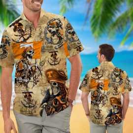 Tennessee Volunteers Pirates Aloha Hawaiian Button Up Shirt Retro Vintage Style