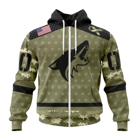 Personalized Arizona Coyotes Special Camo Military Appreciation Zip Up D22