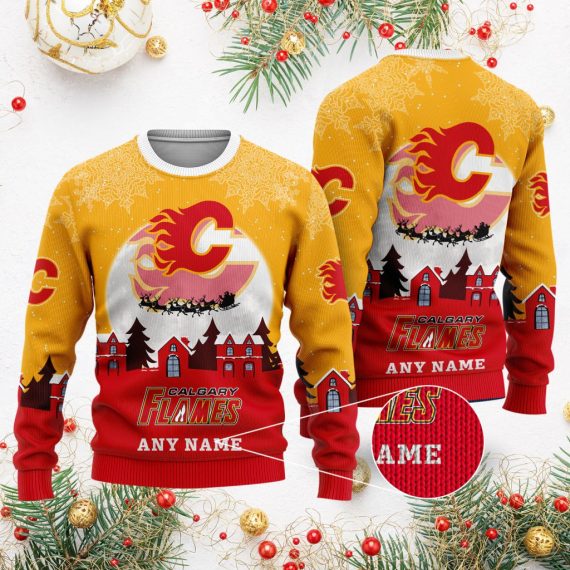 Personalized Calgary Flames Christmas Ugly Sweater Design Show Your Spirit