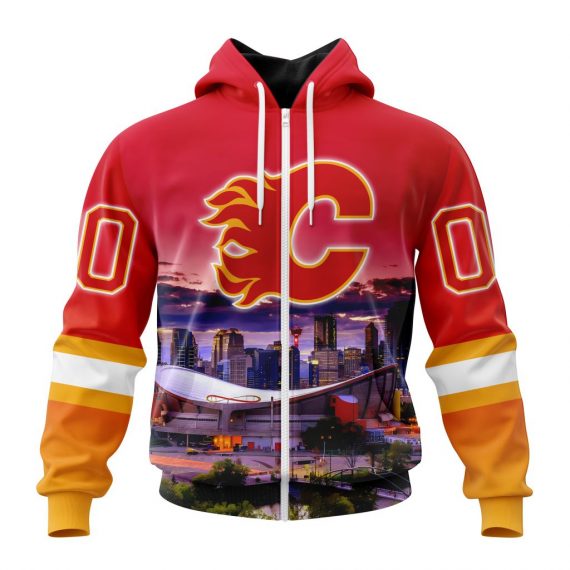 Personalized Calgary Flames Design With City Skyline Unique Style Custom Jersey