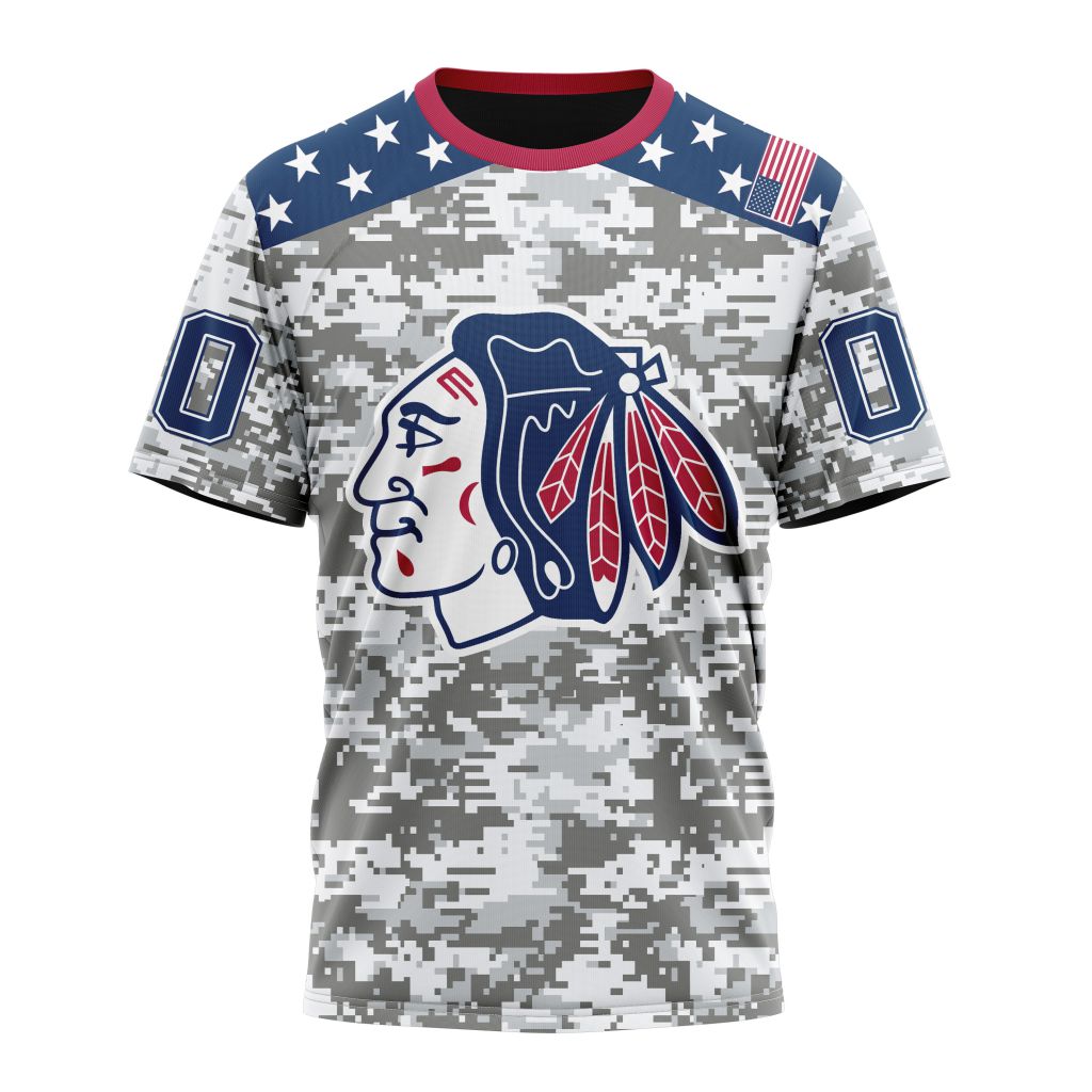 Personalized Chicago Unique Blackhawks Camo Design Veterans Day Short Sleeve
