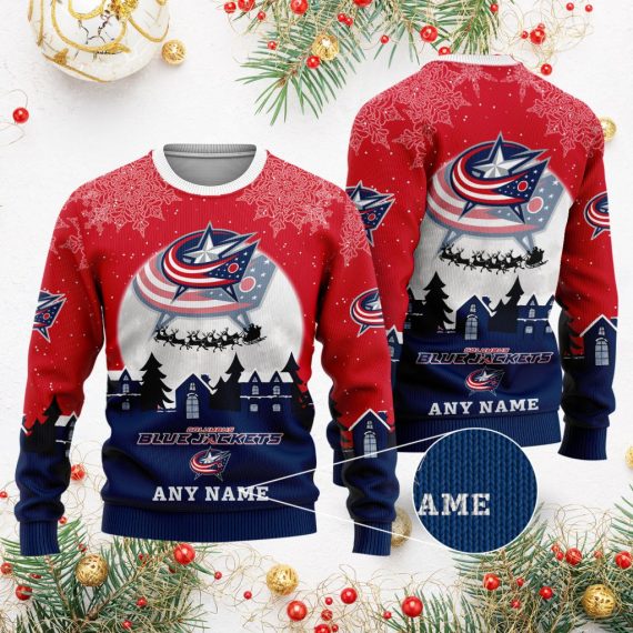 Personalized Columbus Blue Jackets Christmas Ugly Sweater Design Show Your Spirit
