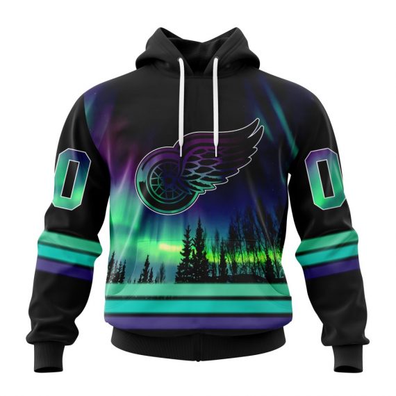 Personalized Detroit Red Wings Design With Northern Lights Custom Jersey