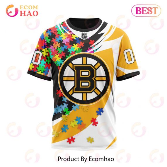 Personalized Name Number Boston Autism Awareness Design Bruins Short Sleeve I