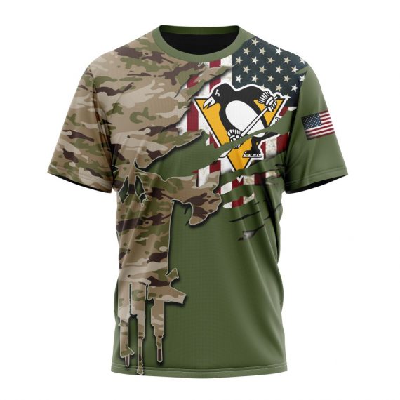 Personalized Pittsburgh Penguins Camo Skull Design Unique Short Sleeve