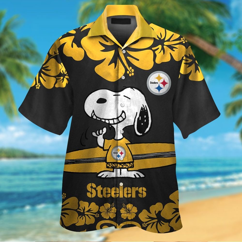 Pittsburgh Steelers Snoopy Short Sleeve Button Up Tropical Aloha Hawaiian Shirts NFL
