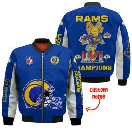 Los Angeles Rams Vintage Mascot Super Bowl LVI Champions 2021 NFL Custom Name Bomber Jacket