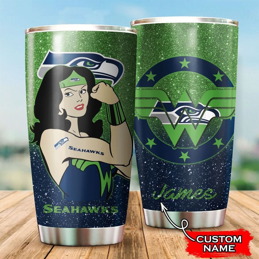 Seattle Seahawks Wonder Woman Custom Name Tumbler