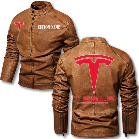 Tesla Motors Personalized Stand Collar Leather Jacket Warm Jacket Winter Outer Wear
