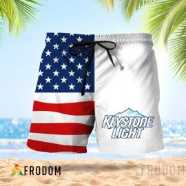 Vintage USA Flag Fourth Of July Keystone Light Unique Design Cool Style Hawaiian Shorts