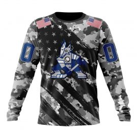 Personalized Arizona Coyotes Grey Camo Military Design And USA Flags On Shoulder