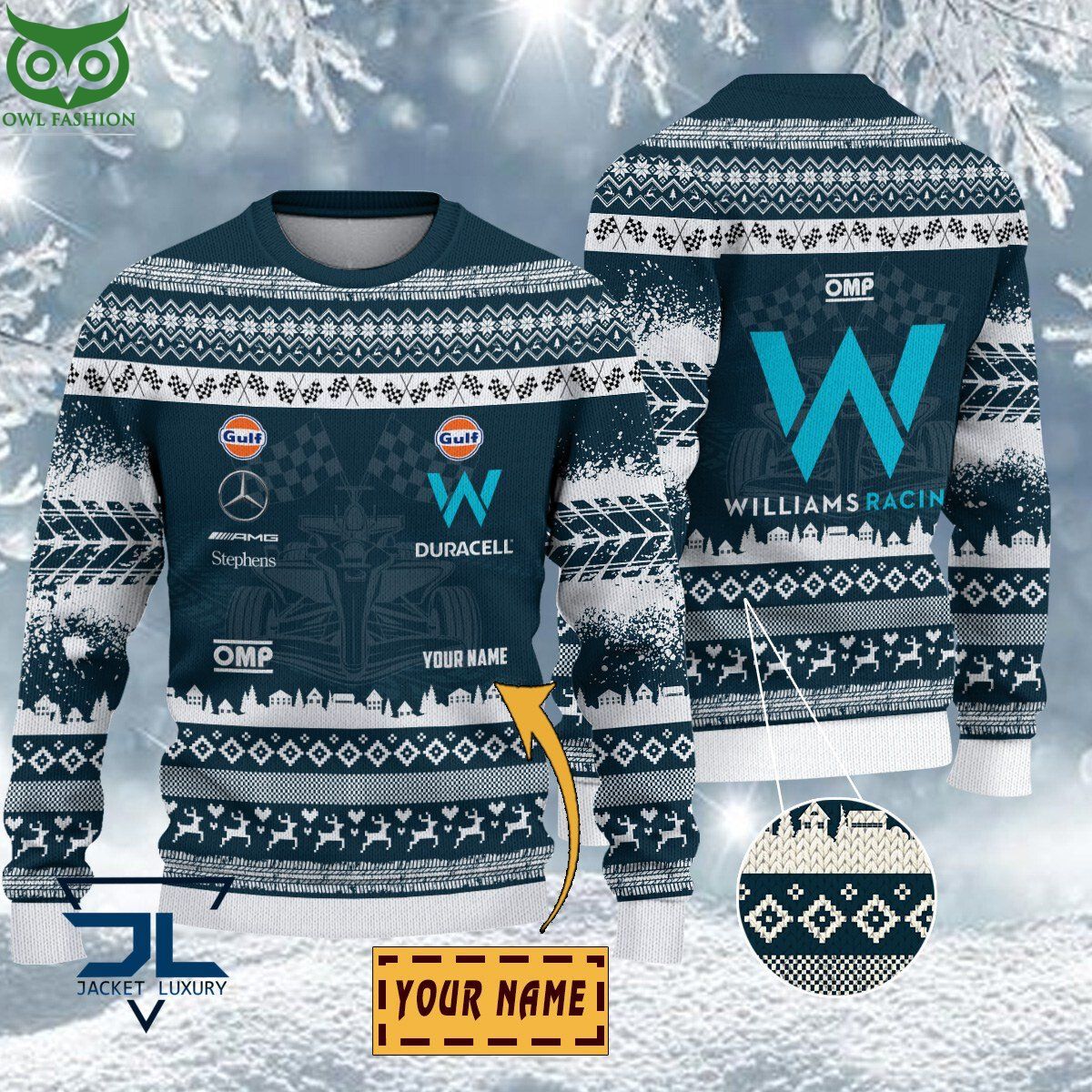 Williams Racing Style Unique Customized Name Ugly Sweater Winter Cozy Vibe