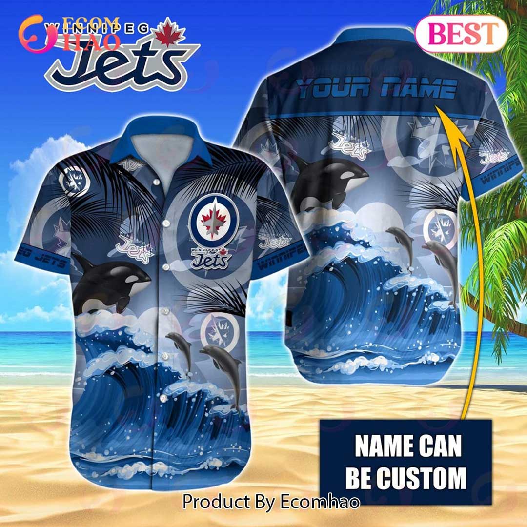 Winnipeg Jets Special Hawaiian Design With Dolphins And Waves Button Shirt